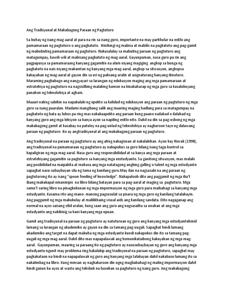 Ang Tradisyunal At Makabagong Paraan Ng Pagtuturo Pdf