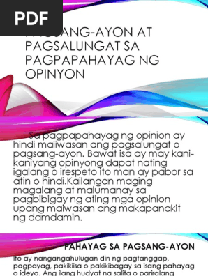 Ang pagsalungat naman ay ang kabaligtaran ng pag sang-ayon. Pagsang ayon at pagsalungat sa pagpapahayag ng opinyon. 3 question Ano ang.