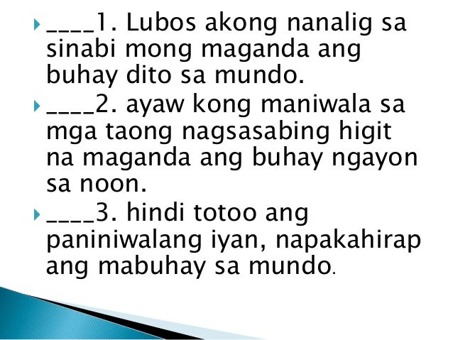 Simuno o Paksa-ito ang pinag uusapan sa pangungusap. Tapusin ang pahayag ayon sa iyong sariling pananaw magbigay ng limang pangungusap isulat ang pahayag sa iyong sagutang papel para sa akin mahalaga ang mga nagawa ng mga sinaunang kabihasnan sapagkat. PANGUNGUSAP Isang salita o lipon ng mga salita na nagsasaad ng isang buong diwa.