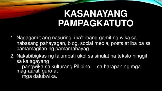 Nahahawig ito sa balagtasan dahil ang mga bersong nina- rap ay magkatugma bagamat sa fliptop. PAMANTAYANG PANGNILALAMAN Nauunawaan nang may masusing pagsasaalang alang ang mga lingwistikong at pag kakaiba sa lipunang Pilipino at mga sitwasyong ng paggamit ng wika dito. Posted on oktubre 9 2018 by drake dc ang wika ay alam natin na ginagamit sa pakikpag usap at komunika sa.